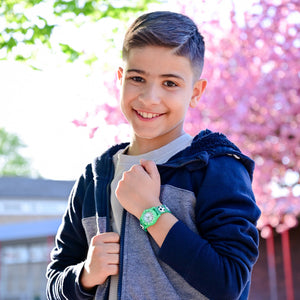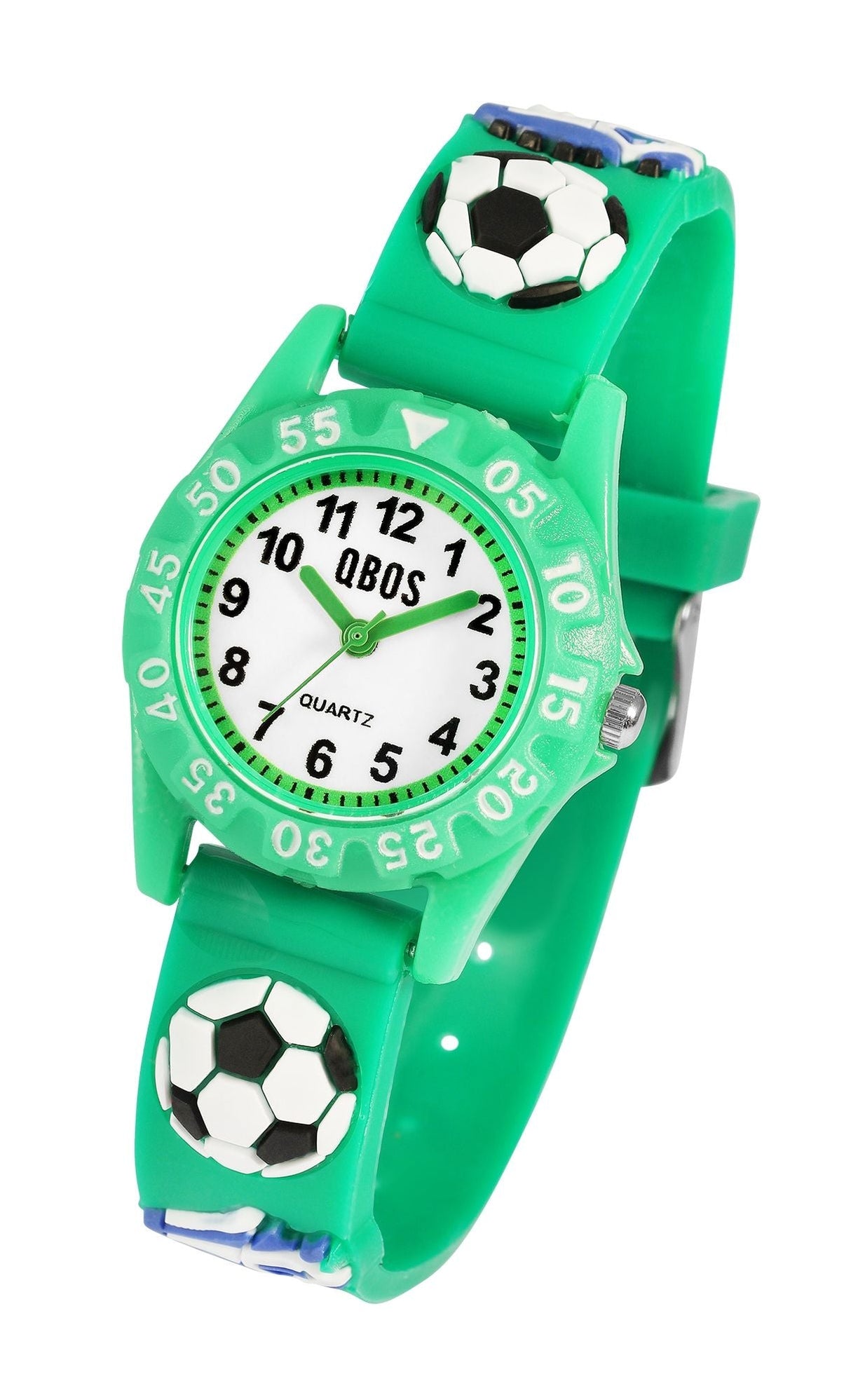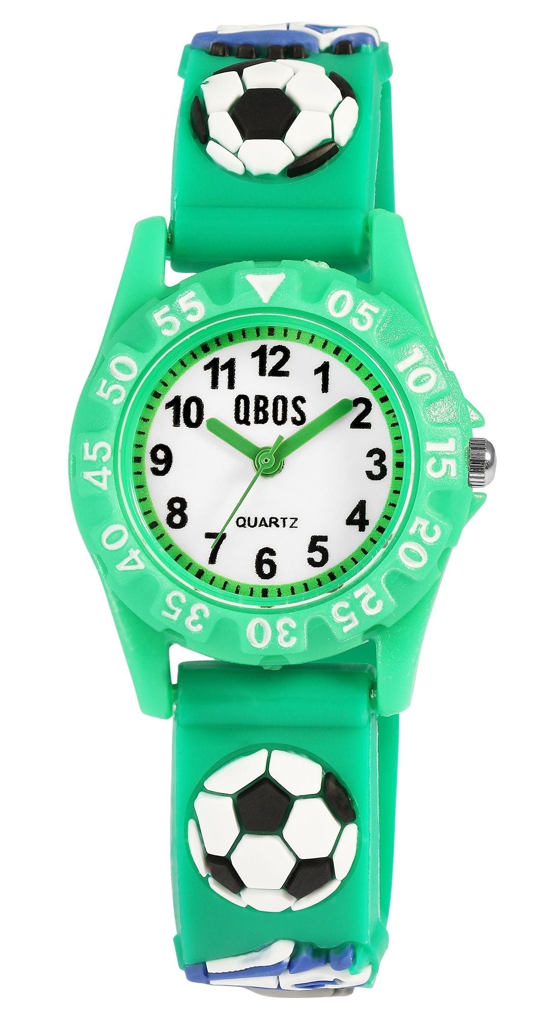 Machen Sie Ihrem Kind das Lesen der Uhrzeit leicht und spielerisch beigebracht! Diese Kinderuhr von QBOS ist speziell für Kinder mit einem farbenfrohen und sportlichen Look konzipiert. Die Uhr hat ein weiches Silikonarmband und ein leichtes Kunststoffgehäuse – perfekt für den Alltag und aktives Spielen.