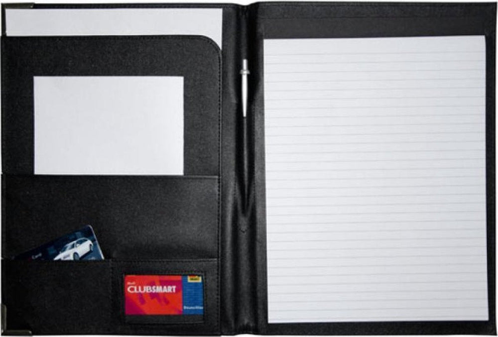 Dokumentenmappe / Konferenzmappe A4, Schwarz - mit Platz für Schreibblock, Stift und Ablage