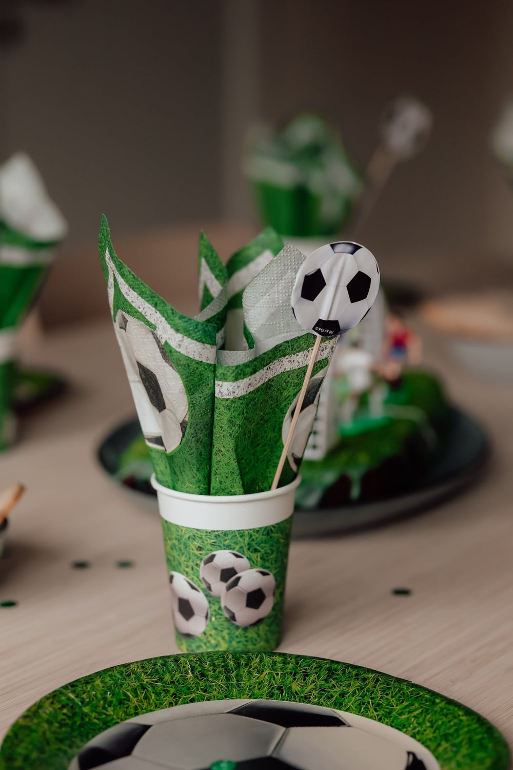 Mit diesen festlichen Fußballservietten wird der Tisch spielbereit! Perfekt für Geburtstage, Fußballpartys oder EM-/WM-Abende. Die Servietten im grünen Fußball-Design sorgen für die richtige Stadionatmosphäre.