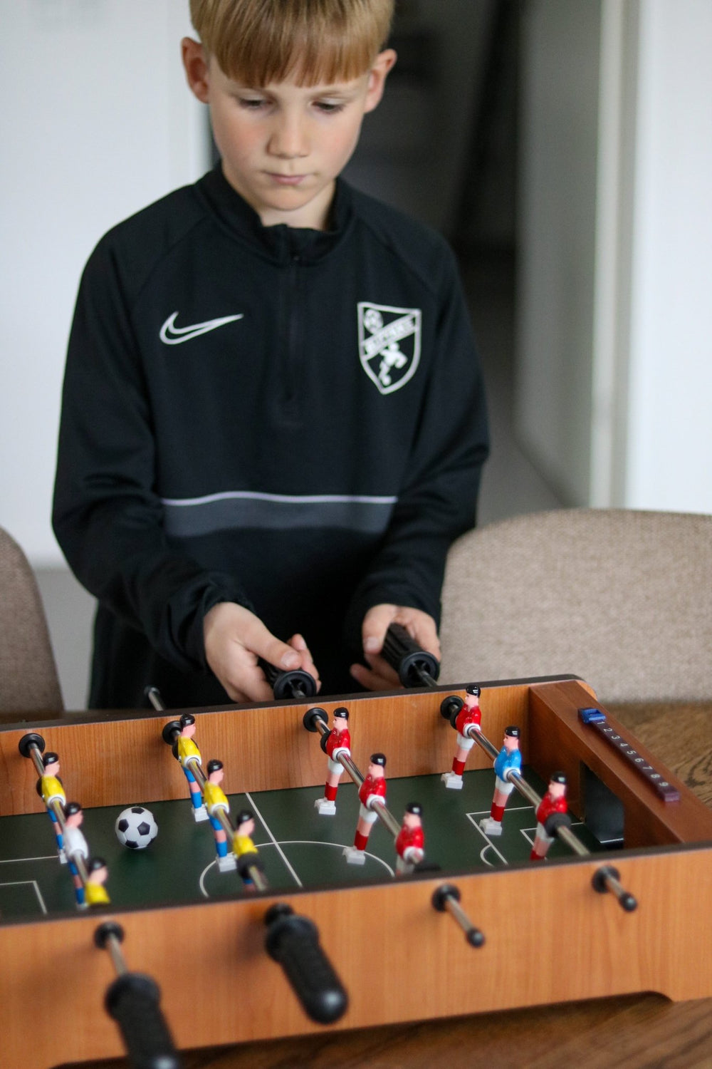 Ein kleiner Kickertisch mit großem Unterhaltungswert für die ganze Familie. Behalten Sie den Punktestand mithilfe der Tortafeln über jedem Tor im Auge. 2 Kicker im Lieferumfang enthalten. Einfach aufzubauen und zu verstauen. Dieser kompakte Kickertisch bietet stundenlange Unterhaltung für die ganze Familie. Er ist einfach aufzubauen und zu verstauen. Perfekt für Kinder und Erwachsene, die eine lustige und aktive Auszeit vom Alltag suchen. Ein Muss für die Familie, die Spiele und Wettbewerb liebt.