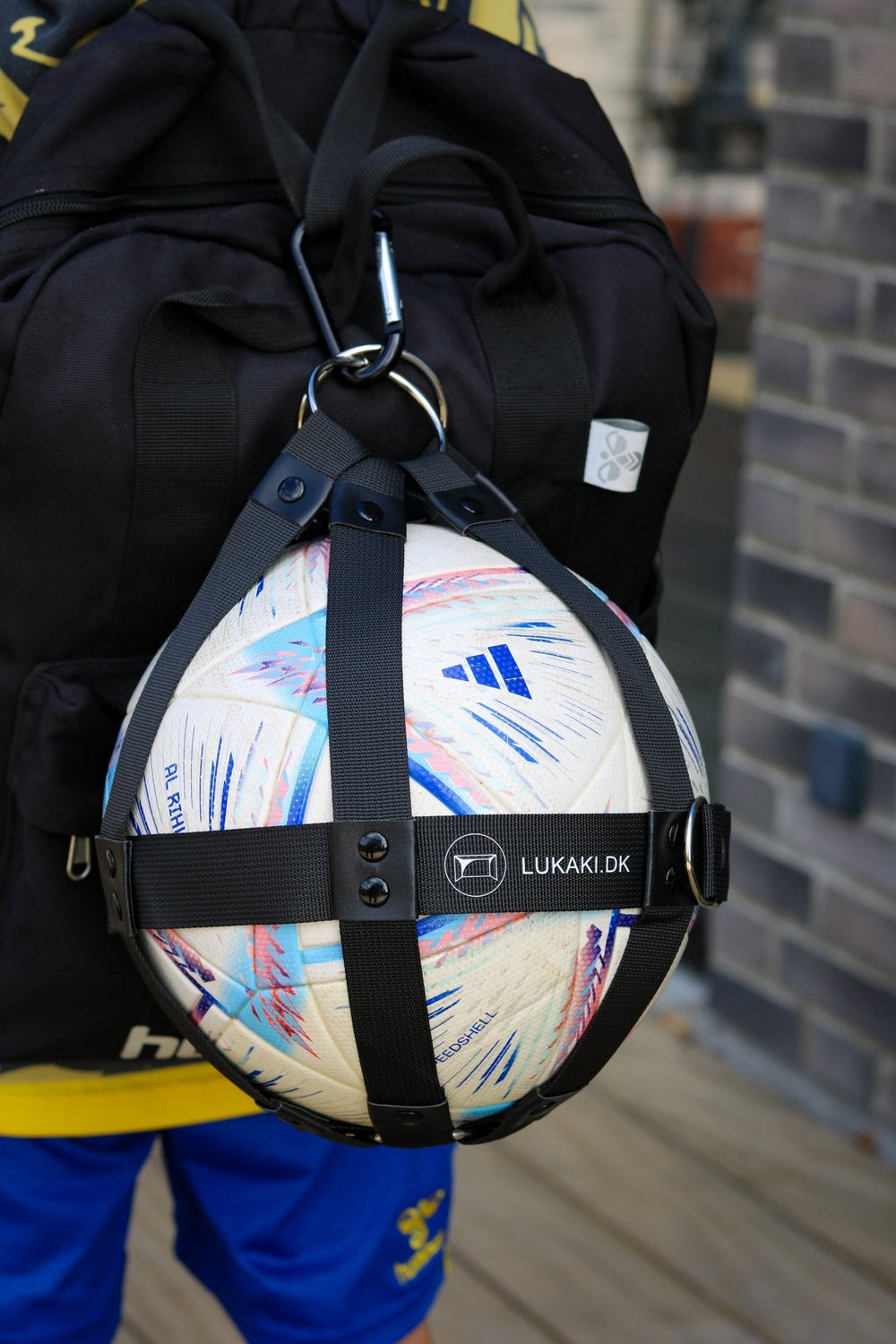 Den smarta bollhållaren gör det enkelt att transportera din boll till och från träning. Den får plats i nästan alla ryggsäckar och väskor och är perfekt för idrottare som vill ha händerna fria på väg till planen.